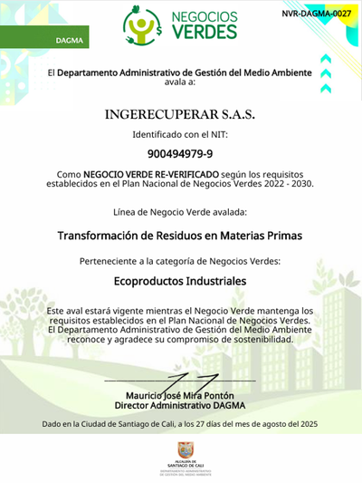 Reconocimiento a la gran labor que realizan las industrias y empresas comerciales en diferentes áreas productivas que permiten hoy aportar a los objetivos de Economía Circular a nivel nacional.